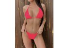 Podprsenka trojúhelníkového střihu, kterou lze nosit na vícero způsobů. Ramínka i obvod jsou na zavazování. Vnitřní strana plavek je opatřena podšívkou a druhou vrstvou...